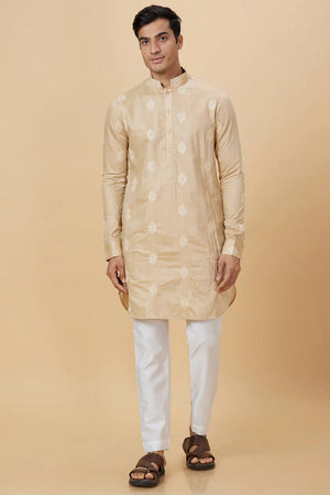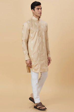Beige Motif Embroidered Work Men's Kurta with Pajama