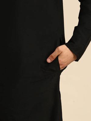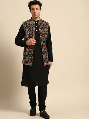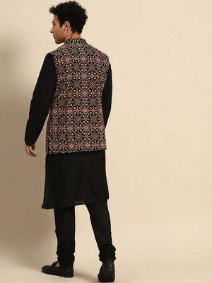 Riwaaz Kurta's Black And Red Printed Jacket And Kurta Set For Men's