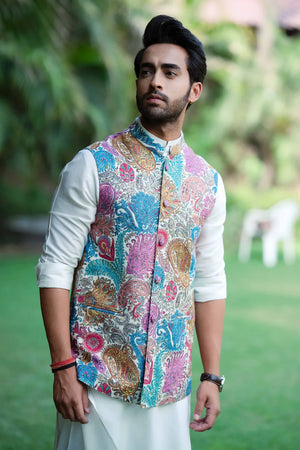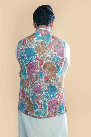 Riwaaz Kurta's Multi Color Floral Printed Jacket And Kurta Set For Men's