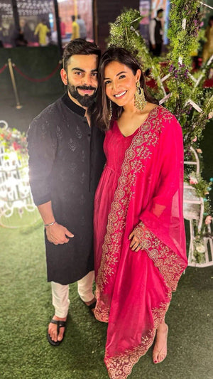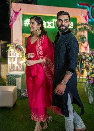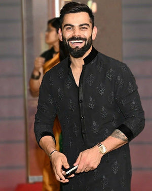 This VK Embroidered Men's Kurta with Pajama Is Created by Riwaaz Kurta ,This Hand-stitched Kurta Is Made of 100% Pure Cotton Fabric With Having embroidered work Over It. Our Attractive embroidery Add More Charm to Your Look, Wear This at Any Time Because the Fabric Is So Smooth to Skin That You Will Love It.