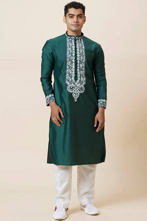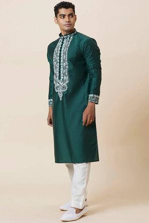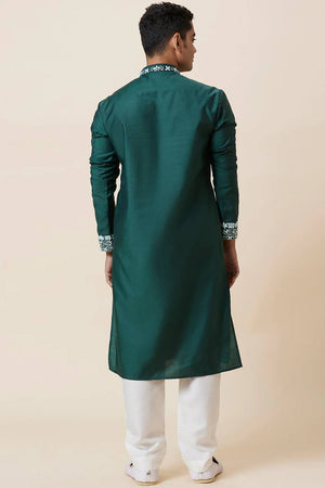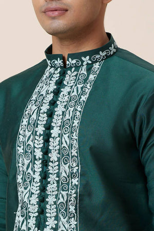 Green Neck Embroidered Work Men's Kurta with Pajama