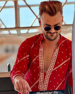 This HOT RED OPEN V NECK EMBROIDERED WORK KURTA PAJAMA SET FOR MEN'S Created by RIWAAZ KURTA ,This Hand-stitched Kurta Is Made of 1Viscose (100% Roman Cotton) Fabric With Having embroidery heavy work Over It. Our Attractive Prints Add More Charm to Your Look, Wear This at Any Time Because the Fabric Is So Smooth to Skin That You Will Love It.