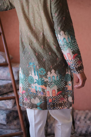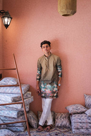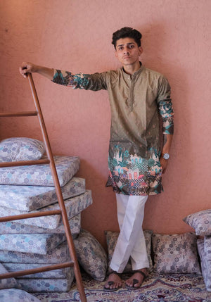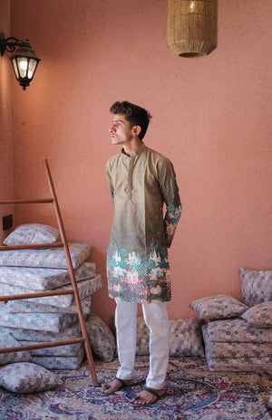 MEHNDI LIGHT DARK SCHIFFLI MAHEL PRINTRD KURTA WITH PAJAMA
