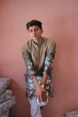 This Mehndi Light dark Schiffli Mahel Printed Kurta With Pajama Is Created by Riwaaz Kurta, This full stitched Kurta Is Made of Rayon Schiffli Fabric With Having digital Printed Prints Over It. Our Attractive Prints Add More Charm to Your Look, Wear This at Any Time Because the Fabric Is So Smooth to Skin That You Will Love It.