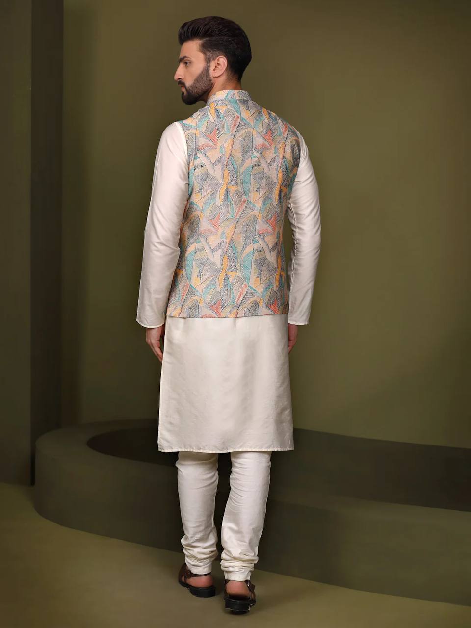 Riwaaz Kurta's Multi Color Printed Jacket And Kurta Set For Men's