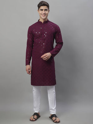 The Wine Schiffli Embroidered Work Men's Kurta with Pajama