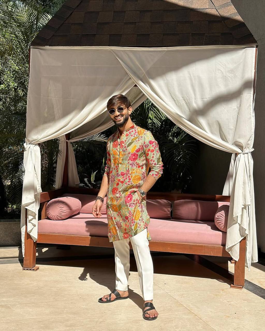 MULTI FLOWER PRINTED KURTA PAJAMA SET FOR MEN'S