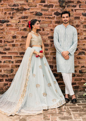 Powder Blue Embroidered Work Men's Kurta with Pajama