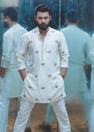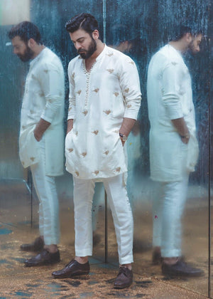 This Stylish White Embroidered Work Men's Kurta with Pajama Is Created by Riwaaz Kurta,This Hand-stitched Kurta Is Made of 100% Pure Cotton Fabric With Having embroidered work Over It. Our Attractive embroidery Add More Charm to Your Look, Wear This at Any Time Because the Fabric Is So Smooth to Skin That You Will Love It.