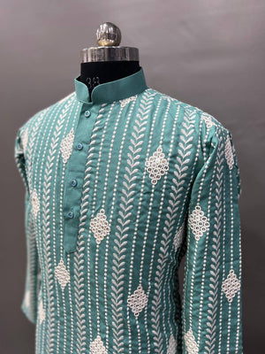 This The Classic Black Sequence Embroidered Work Men's Kurta with Pajama Is Created by Riwaaz Kurta,This Hand-stitched Kurta Is Made of 100% Pure Cotton Fabric With Having embroidered work Over It. Our Attractive embroidery Add More Charm to Your Look, Wear This at Any Time Because the Fabric Is So Smooth to Skin That You Will Love It.
