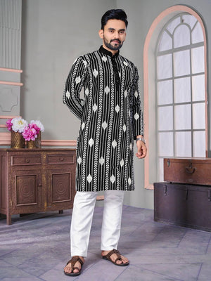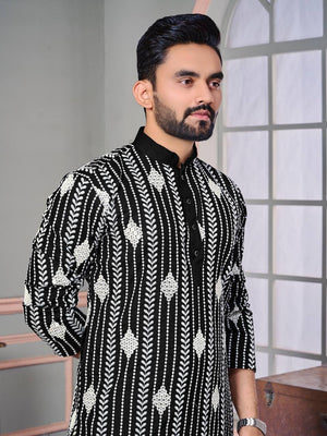 The Classic Black Sequence Embroidered Work Men's Kurta with Pajama