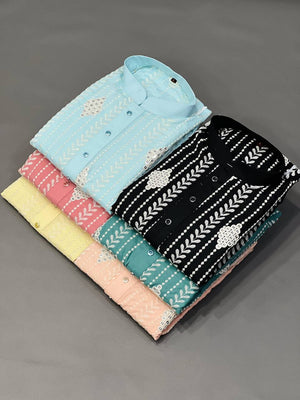 This The Classic Light Yellow Sequence Embroidered Work Men's Kurta with Pajama Is Created by Riwaaz Kurta ,This Hand-stitched Kurta Is Made of 100% Pure Cotton Fabric With Having embroidered work Over It. Our Attractive embroidery Add More Charm to Your Look, Wear This at Any Time Because the Fabric Is So Smooth to Skin That You Will Love It.