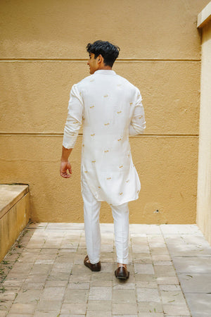 White Dragon Fly Embroidered Work Men's Kurta with Pajama
