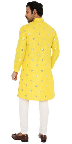 Yellow Sequence Embroidered Work Men's Kurta with Pajama