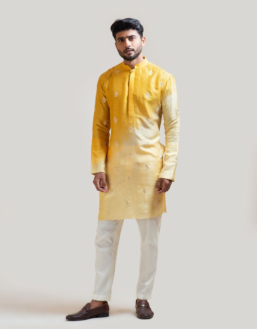 Yellow Shaded Embroidered Work Men's Kurta with Pajama